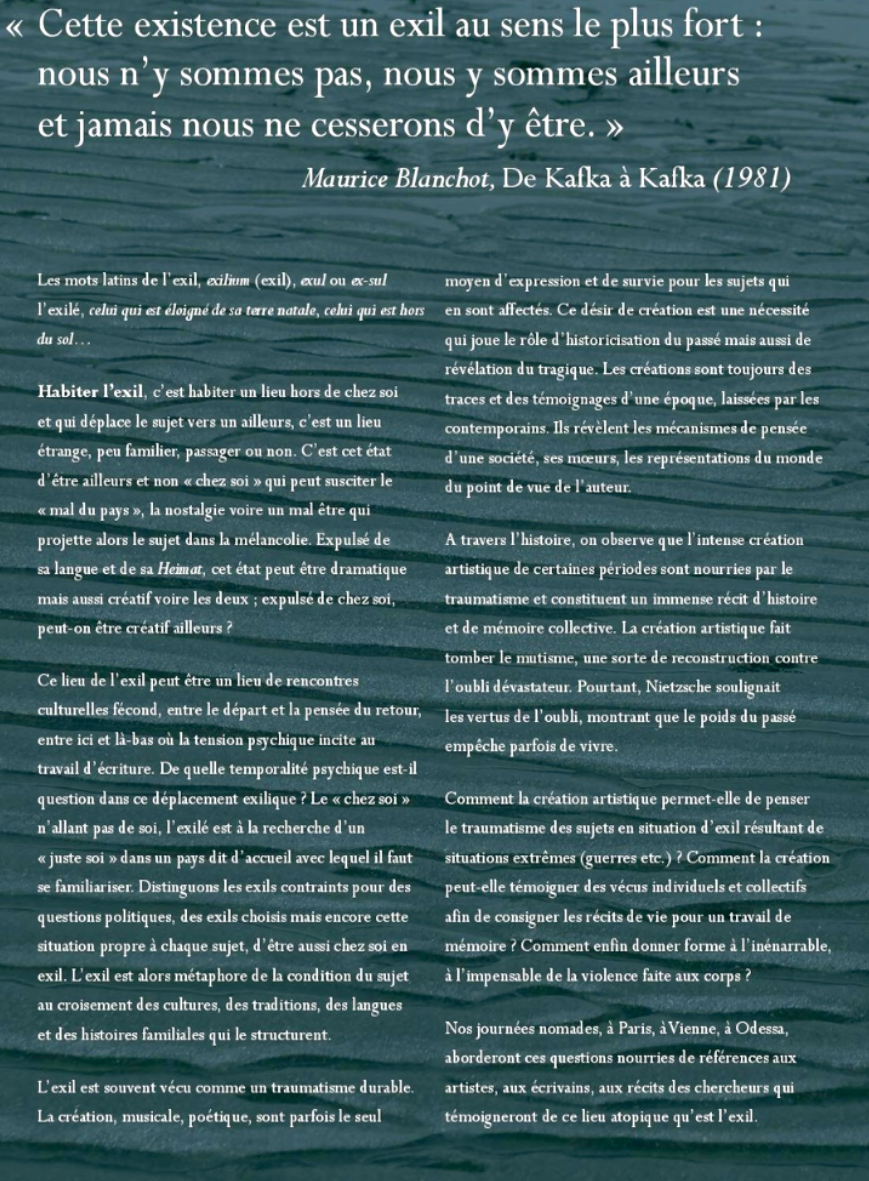 Colloque « Habiter l’exil, Penser les lieux à partir des processus de création »